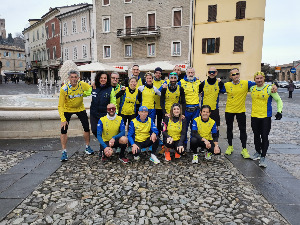 Dopo la foto di rito, in schieramento gialloblu, siamo partiti per una bella corsetta attorno al nostro bel paese.