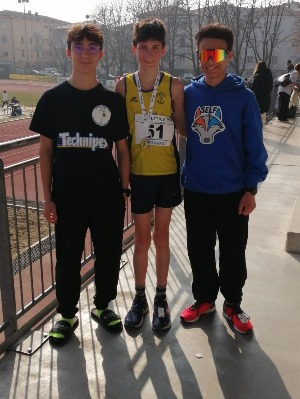 A Parma tantissimi concorrenti per le prove multiple individuali indoor. 4 i nostri atleti presenti, con ottimi risultati in alcune specialità. Alessandro Gozzi sforna ben 2 P.B. Di spessore quello nel salto in alto con m. 1,68 migliorandosi di 3cm, e ritoccato anche il personale nei m. 1000 con 3’34”10, abbassato di 5”. Buona la prova dei 60hs, passati tutti con 3 appoggi, in 9”53. Da migliorare il lancio del peso (kg. 4) con 7,20m. Alessandro ottiene 1832 punti totali e l'8va posizione assoluta. - Nicolò Gnoli conquista ben 3 P.B.: nel peso, sua specialità, con m. 9,89 ; nell’alto con 1,50m (aveva 1,47) e nei 60hs con 10”64 (aveva 11”68) che potrebbe ancora essere migliorato. Nei 1000 corre in 3’34”25. Nicolò giunge 11° con 1650 punti. - Celeste Strapazzini, al primo anno di categoria, eguaglia il P.B. nella sua specialità del salto in alto, con 1,45m. Bravissima nei m. 400 con 1’12”64. 7,89m il miglior lancio nel peso, tra le prime 7, e chiude i 60hs con 11”47 ma con 4 appoggi, quindi migliorabile. Celeste arriva 16^ su ben 32 concorrenti, con 2021 punti. - Giulia Biondi ottiene i migliori risultati nei 60 hs, chiusi in 10”82 con 3 appoggi, e nei m. 400 con 1’13”51 dando l'anima. Bravissima. Peccato per il salto in alto, dove non va oltre 1,24. Infine 6,12m nel peso. Giulia è 21^ con 1710 punti.